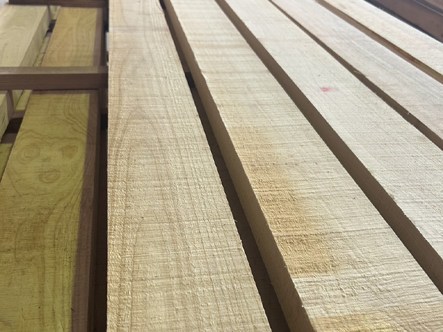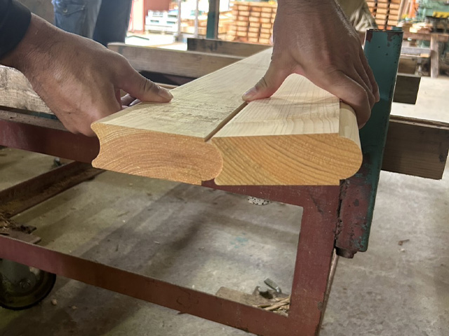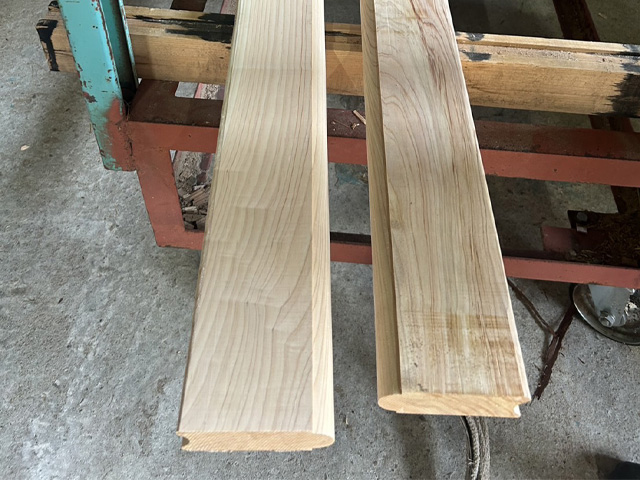 それと同時に丹波市にある提携製材会社で丹波ヒノキの無垢材で節無し材をモルダー加工など必要最低限の加工をします。