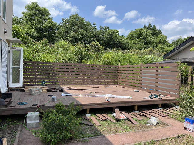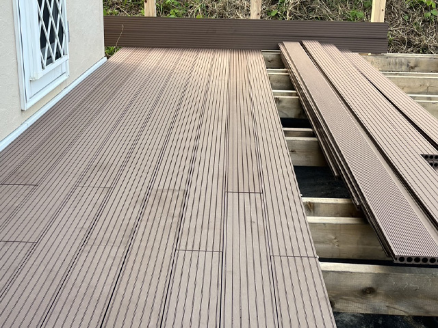 約45平米のウッドデッキを作るのに長さ3000mmの人工木の板が約170本必要でした。