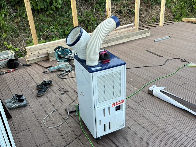 真夏でしたのでスポットクーラーがないと作業できません💦