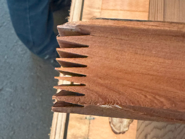 集成材の継ぎ目のボンドが溶けだしたり、外れたりしたらこうなります。